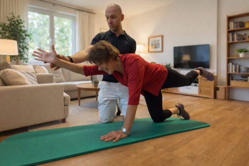 Statt einzelne Symptome isoliert zu behandeln, schaue ich darauf, wie Sie sich im Alltag bewegen, welche Muster sich eingeschlichen haben und wo Ihr Körper unnötig Energie verliert. Mit gezielten Atem- und Positionsübungen, klaren Bewegungsideen und funktionellen Reizen unterstütze ich Sie dabei, wieder in ein ausgewogenes, natürliches Bewegungsmuster zu kommen.